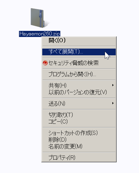 あなたがダウンロードした聞々ハヤえもんのファイルはZIPという形式で圧縮されています。