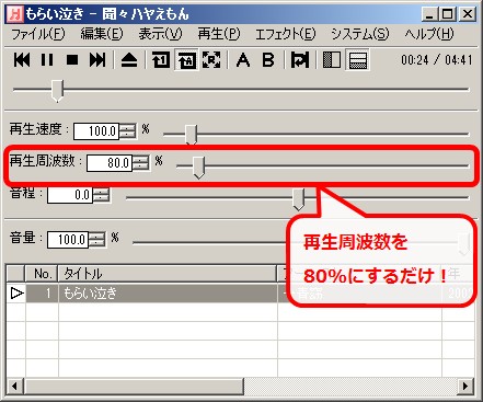 ▼再生周波数を80%にするだけ