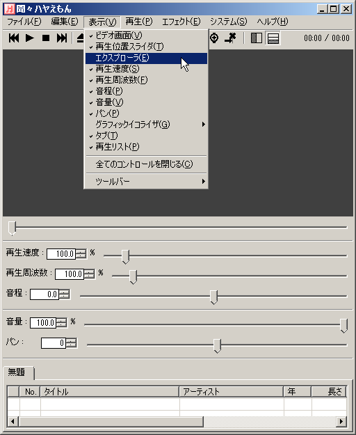 表示→エクスプローラメニューを選択することで、Windowsのエクスプローラのような外観のコントロールをハヤえもんのウィンドウ上に表示することができます。