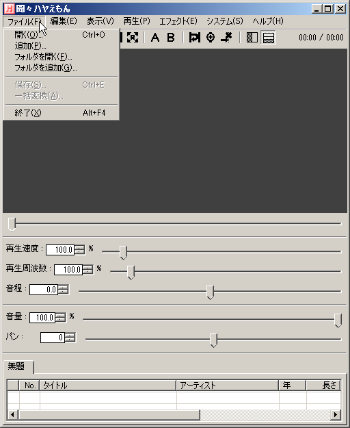 聞々ハヤえもんで音楽を聴くには、まず再生リストに音声ファイルを追加します。